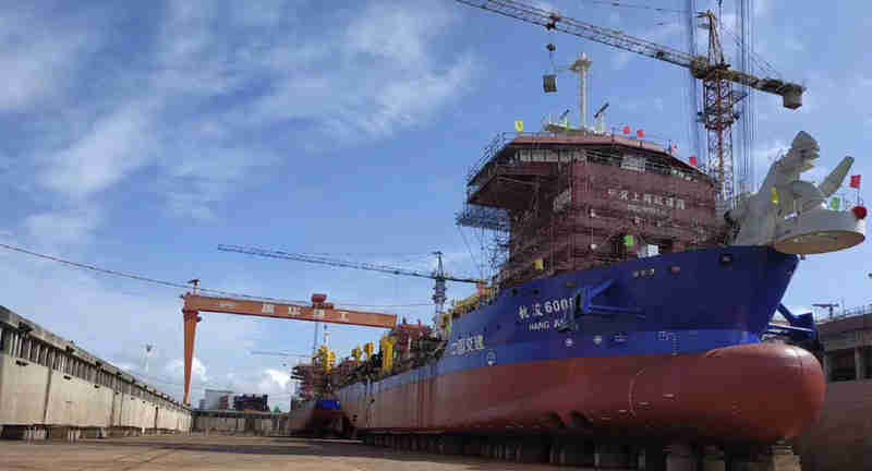 祝賀南通豪通公司(振華事業(yè)部)在上海振華重工(啟東公司)承接的整裝舾裝,搭載工程的6500m3耙吸式挖泥船,于8月18日上午11點18分順利下水!